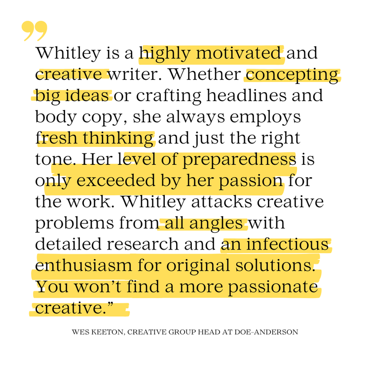 At the ripe old age of three, Whitley Edwards was doomed to a life in advertising when her parents promoted her to middle child—a role that honed her ability to capture limited attention.